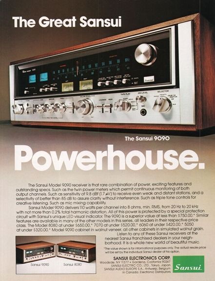 Los receptores PIONEER de la década de los 70 (de 1971 a 1981 aproximadamente) eran muy apreciados por la sensación de calidez de su sonido totalmente analógico. Estos receptores eran también admirados por su aspecto. Todas las unidades tenían el frontal "plata" de aluminio cepillado que les conferia un aspecto sumamente elegante. En la foto, publicidad de los modelos SX-828 y SX_727